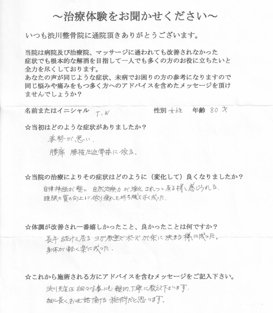腰椎圧迫骨折の後遺症で困っていた患者様からのお言葉!