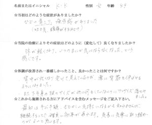 ・マッサージに行っても、その時は楽になるが翌日には元に戻ってしまう